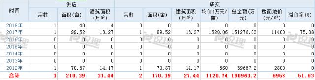 (2012年-2018年十陵土地拍卖情况 来源:锐理数据)