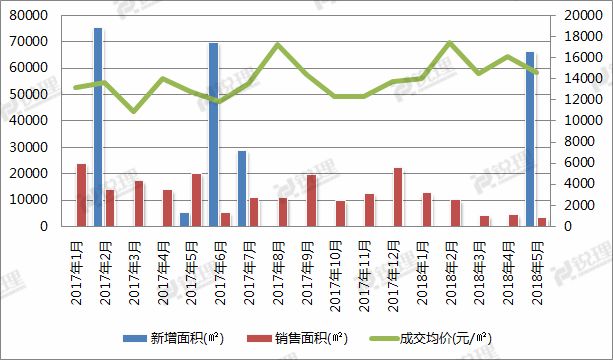 2017年至2018年5月麓山板块商品住宅供销价走势(备案口径)