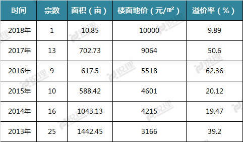 2013年至2018年成华区土地成交情况