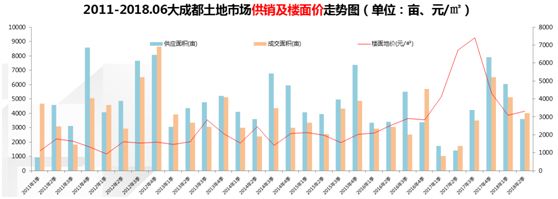 截至统计时间,2018年前两个季度整体供应面积9614亩,同比2017年前两季度增长201%,成交面积9126亩,同比增长234%,平均起拍楼面价2706元/平米,同比下降20%,平均成交楼面价3190元/平米,同比下降45%。