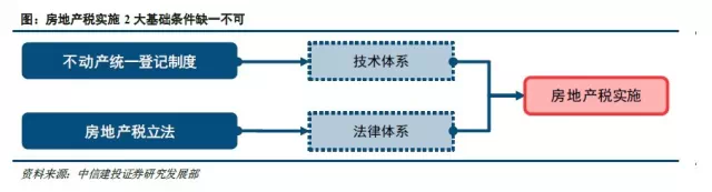 房地产税涉及的税种包括了房地产业营业税、企业所得税、个人所得税、房产税、城镇土地使用税、印花税、土地增值税等等,是一种综合性税种。而房地产税的推进必须达成以下2个条件:不动产登记制度推进(技术体系)、房地产税立法(法律体系),最终用房地产税逐步代替房产税,因此在观察房地产税的实质推进来看,不动产统一登记制度和房地产税立法这两项是核心基础。