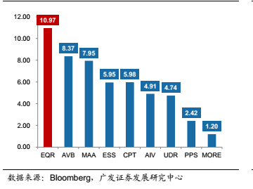 以美国EQR公司为例,该企业成立于1969年,主营业务是公寓租赁,在1993年,其公寓出租业务完成证券化上市,在2001年被纳入标准普尔500成分股。2015年,该公司在美国国内直接或间接持有公寓房间达到10.57万间。2016年EQR总租金收入24.25亿元,利润总额8.56亿美元。同时,EQR旗下物业NOI投资回报率稳定保持在7%以上。